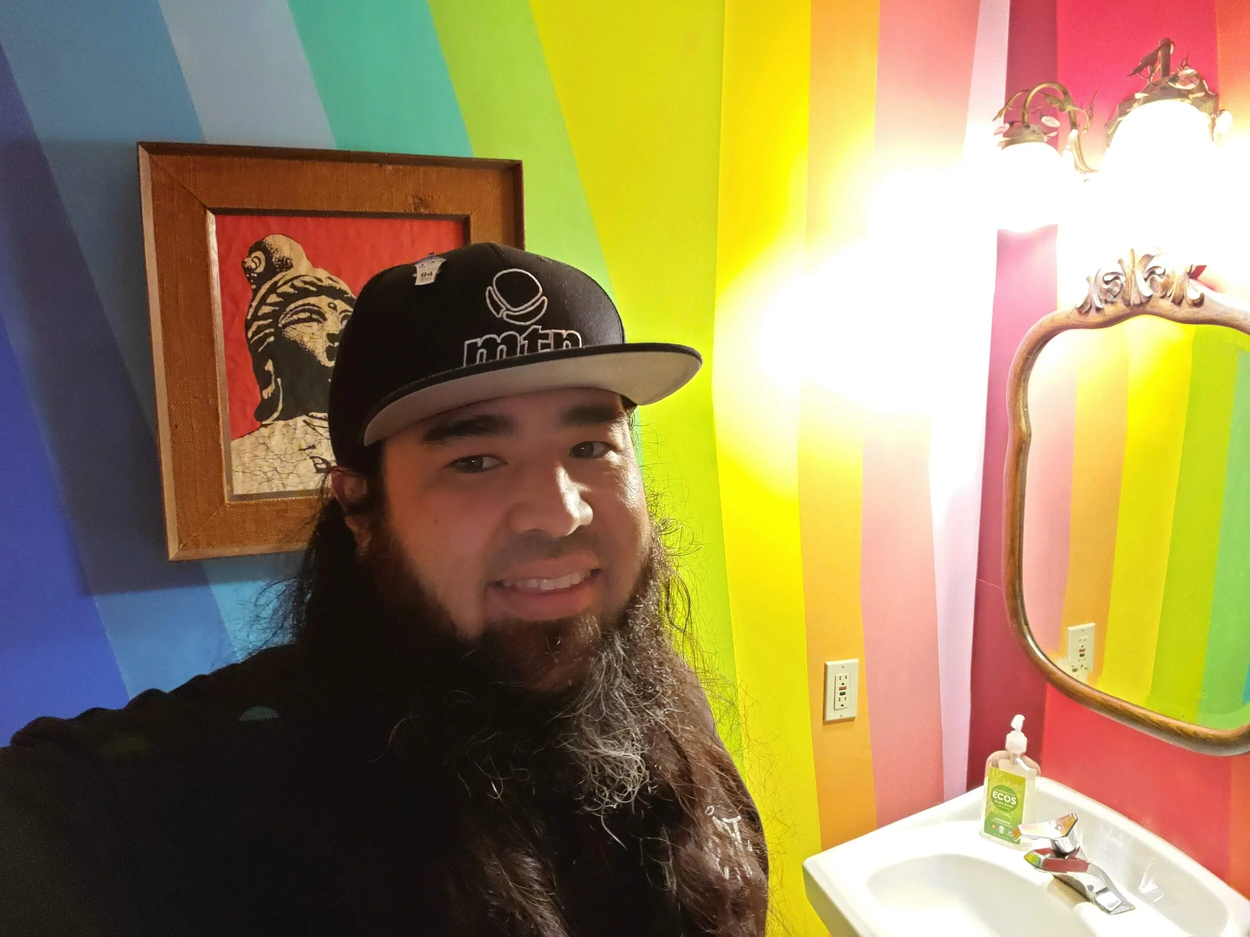 Rainbow Restroom at The Epitome Gallery Jeremy Hara painted the restroom at the Epitome Gallery in Eureka, California. He transformed it into a Rainbow Selfie Wonderland.